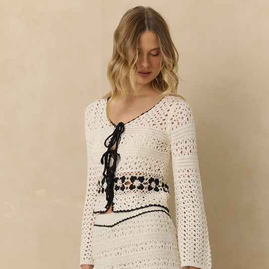 Surf Gypsy Brown Mixed Shell Crochet Detail V-Neck Dress