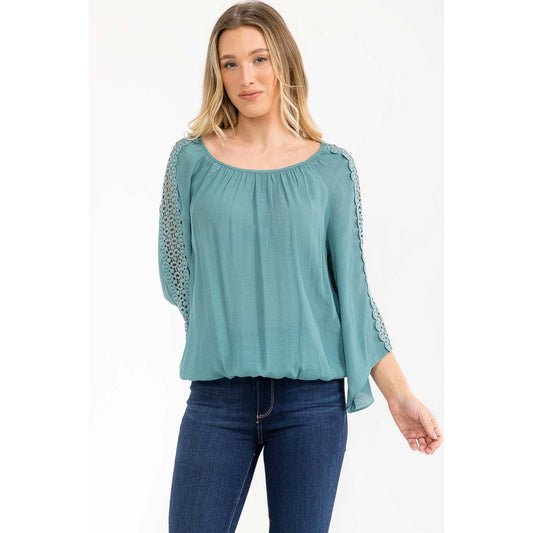 MULTI STRIPE SHORT SLEEVE SHEER CROCHET KNIT TOP