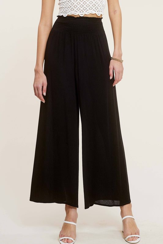 Wide Leg Smocked Elastic Waist Pants With Pockets