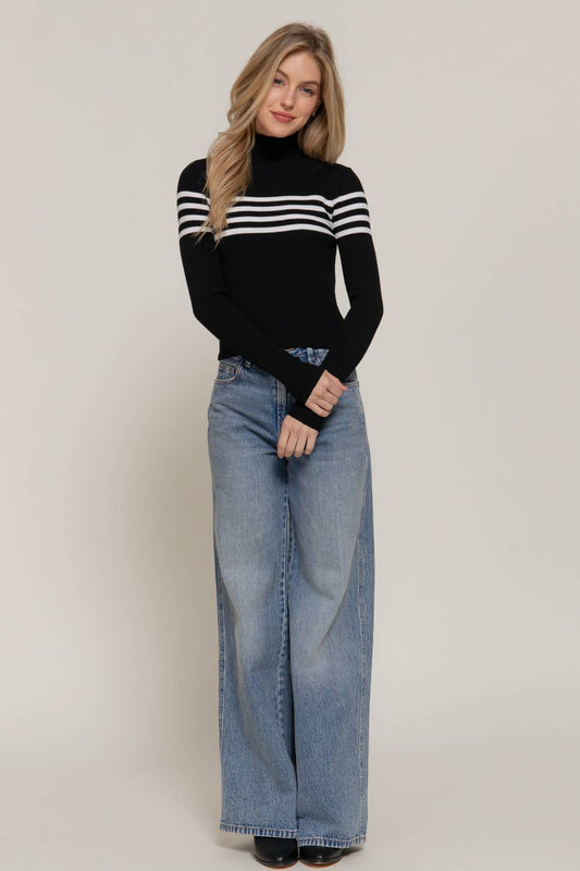 Long Sleeve High Neck Stripe Sweater Top
