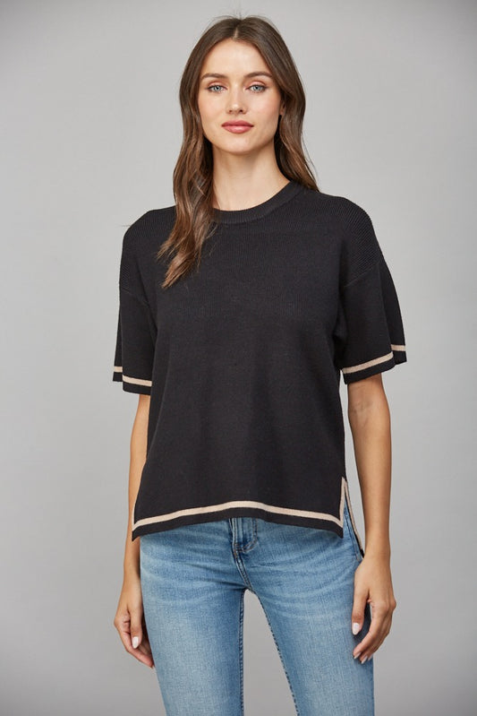Long Sleeve Round Neck Button Down Stripe Sweater