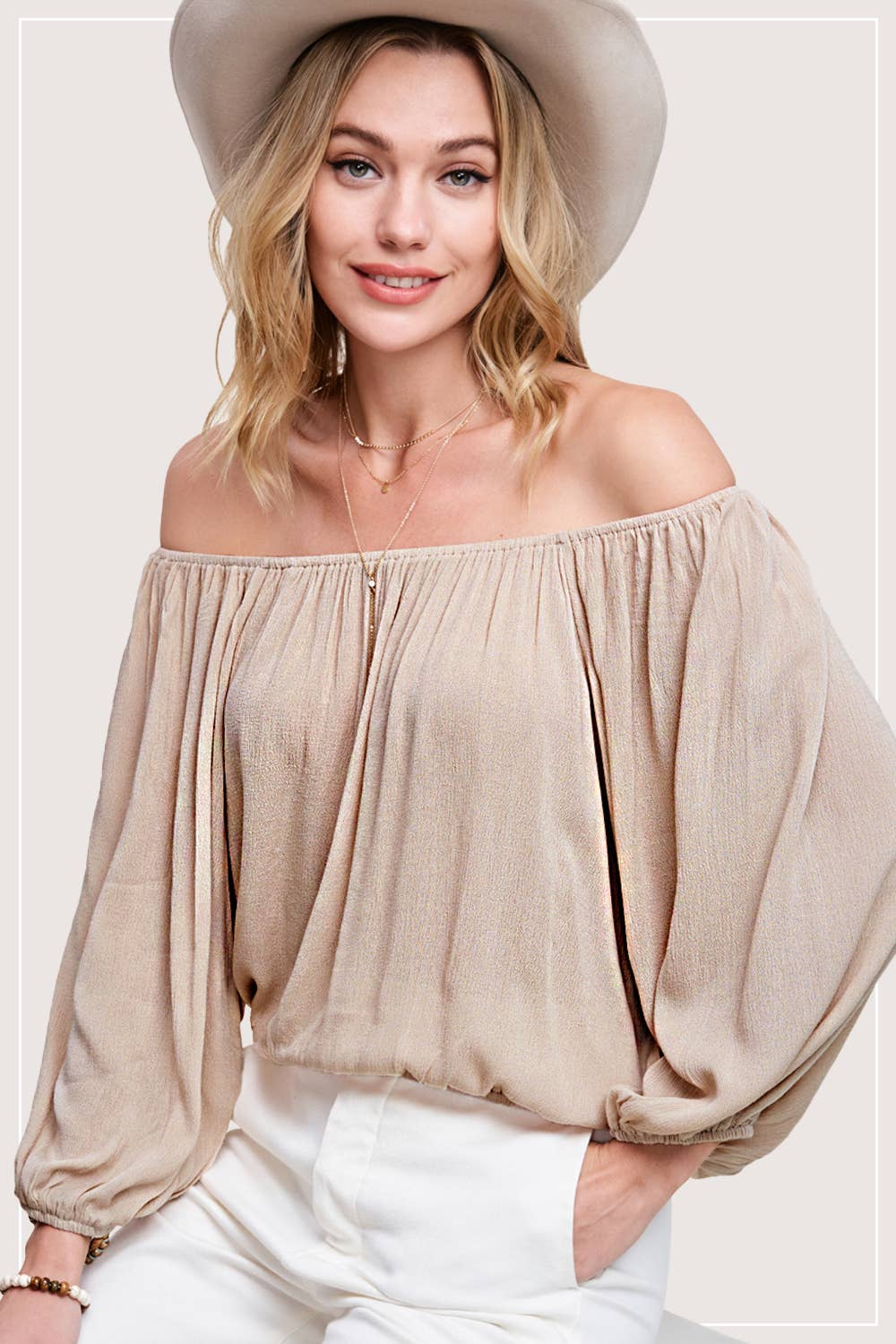 off shoulder, balloon sleeve, basic blouse, feminine, romantic look, relaxed fit