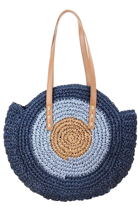 Boho Evil Eye Rattan Wicker Round Beach Tote Bag