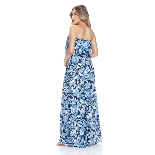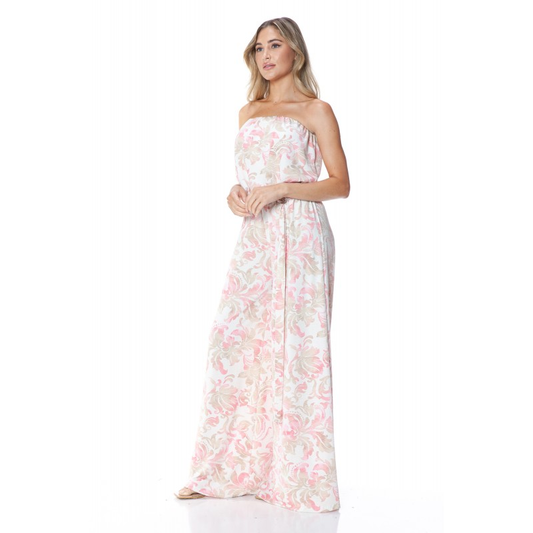 Ariella Strapless Ivory and Pink Print Jumpsuit