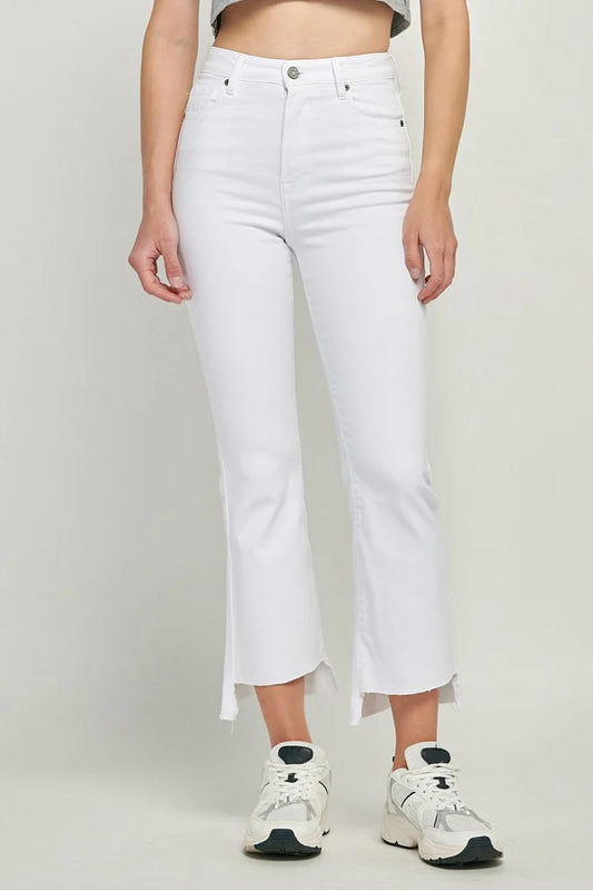 Hidden 27" Inseam Happi High Rise Crop Flare With Step Hem White