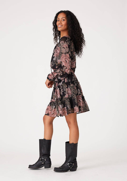Floral Long Sleeve Smocked Tiered Mini Dress