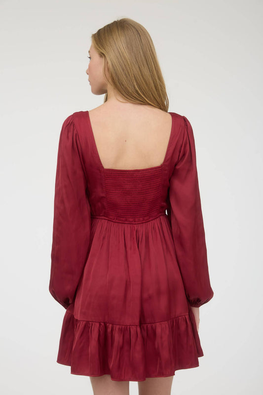 Blu Pepper SATIN SQUARE NECK LONG SLEEVE MINI DRESS