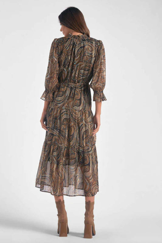 Elan Brown Paisley Midi Dress