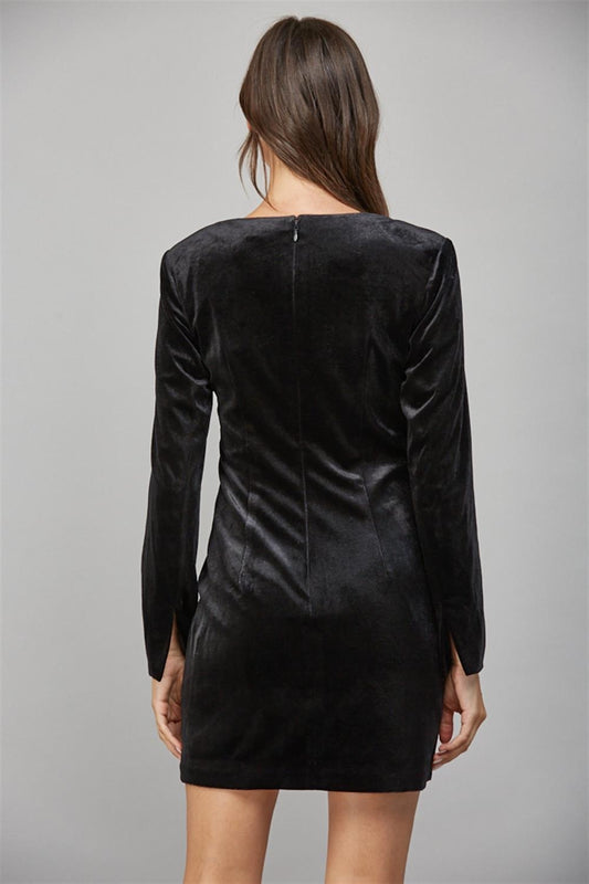 Fate Jewel Embellished Scoop Velvet Long Sleeve Dress