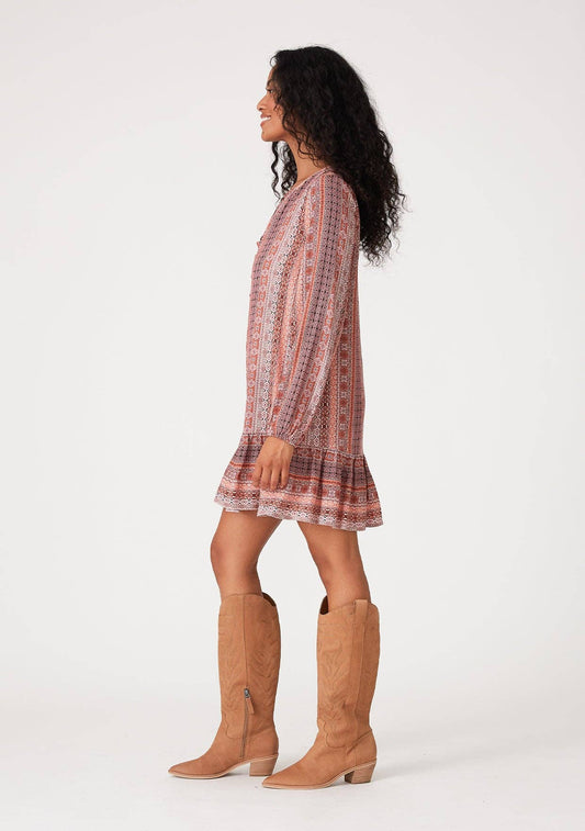 Bohemian Long Sleeve Drop Waist Mini Dress