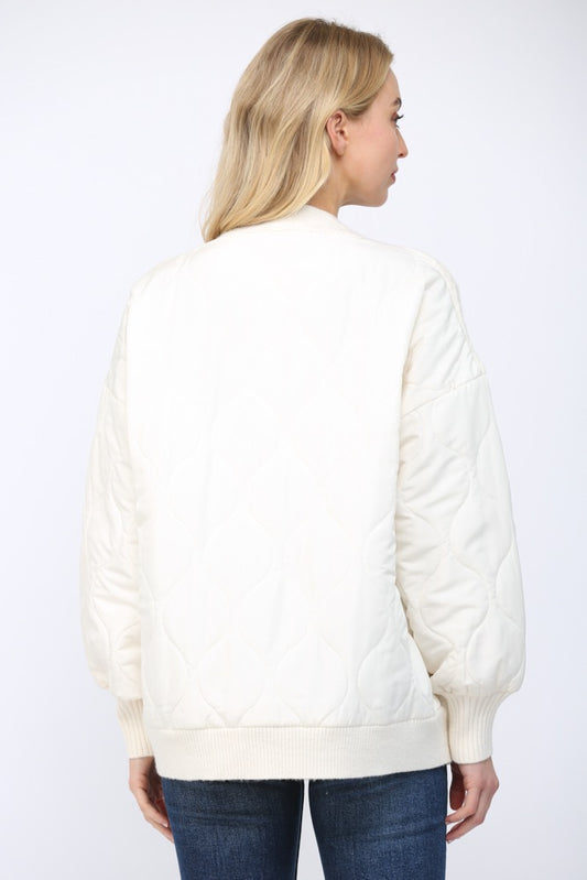 Fate Button-up Quilted Mixed Media Cardigan