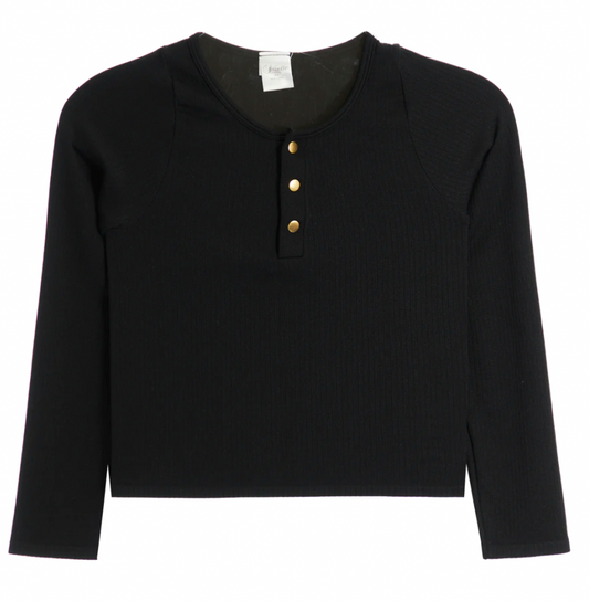 Suzette Tween Long Sleeve Ribbed Henley with Gold Snaps