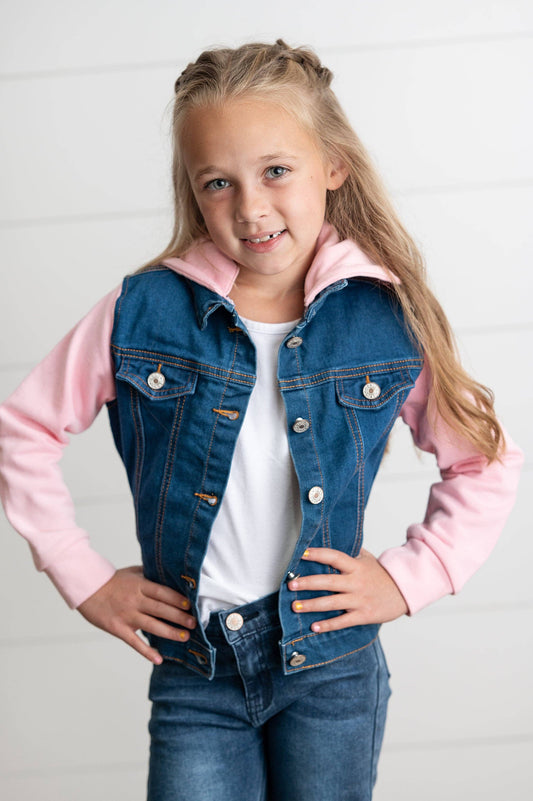 Kids Pink Hoodie Denim and Knit sleeve Jacket