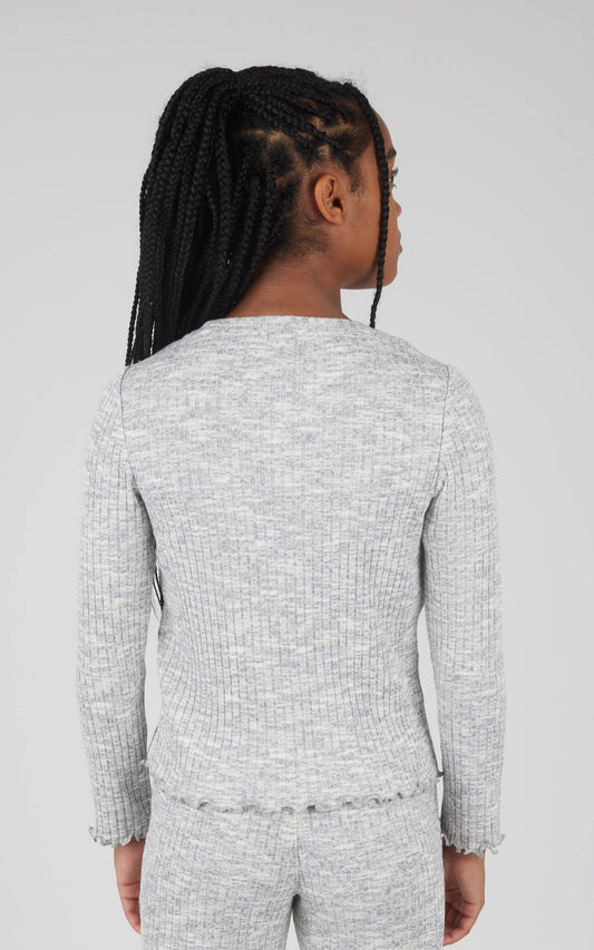 Girls Rib Knit Lettuce Edge Top