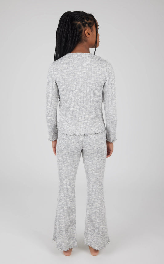 Girls Rib Knit Lettuce Edge Flare Pant